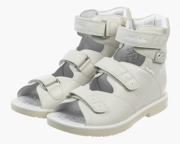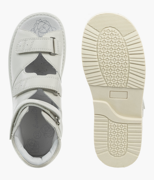 Летняя модель с открытым мысом выполнена из натуральной кожи. Формоустойчивый высокий задник стабилизирует положение стопы, убирая излишнюю подвижность заднего отдела. Каблук Томаса продлен с внутренней стороны, это предотвращает инверсию стопы (завал внутрь). Встроенная анатомическая стелька с поддержкой сводов разгружает стопы и облегчает дискомфорт во время долгих прогулок. Бесшовная кожаная подкладка и мягкий кант в районе голеностопа исключают натирание нежной кожи ребенка. Подошва сделана из легкого, эластичного материала ТЭП, прекрасно амортизирует и поглощает ударные нагрузки на суставы при ходьбе. Носочная часть модели гибкая и подвижная, что способствует формированию естественного переката и толчка в движении.